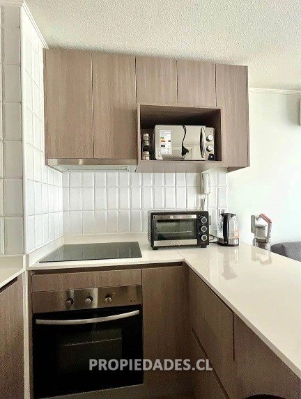 Un dormitorio en suite. Living comedor, pequeño balcón, cocina americana equipada, cocina con cubiertas de Quartz, encimera vitrocerámica, horno eléctrico y campana.