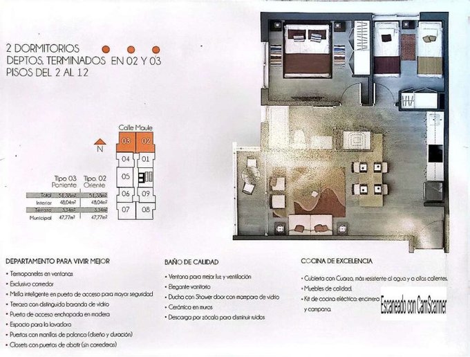 Con una superficie de 47.77 m2 de construcción y 51.38 m2 totales, a pasos del Metro Ñuble.