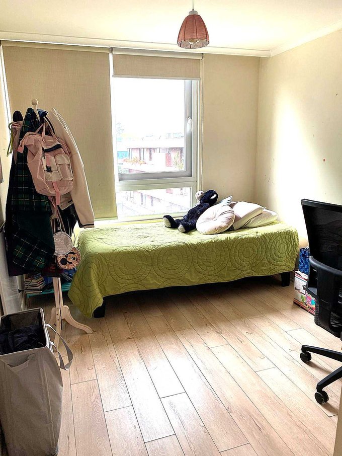 2 Amplios dormitorios, 2 baños (baño de visitas convertido en closet). muy buena vista 100% norte, muy iluminado.