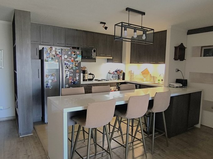 - Cocina americana retroiluminada con conexión a lavadora y lavavajilla.