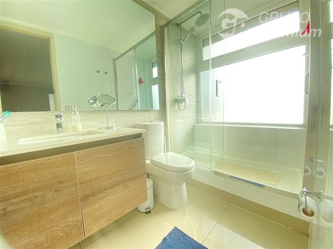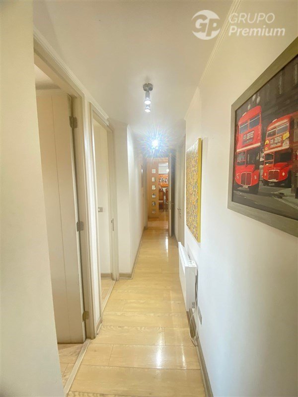3 dormitorios (1 en suite), 2 baños, 2 estacionamientos, 2 bodegas, terraza, ventanas termo panel, agua caliente por caldera