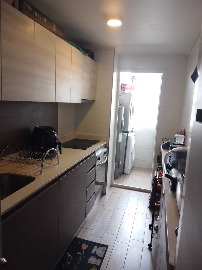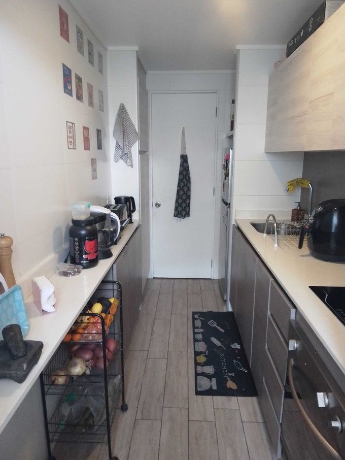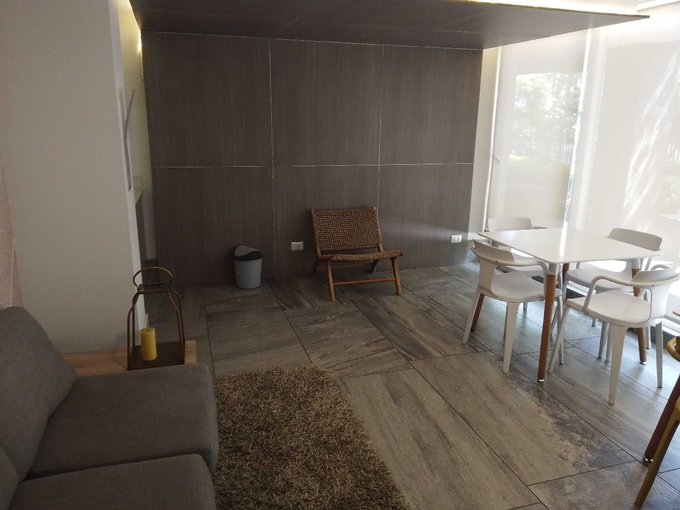 El departamento full eléctrico, tiene 3 dormitorios (todos mirando al norte), uno de ellos en suite y salida a terraza propia, otro baño completo, salita de estar, cocina equipada con encimera, horno y campana y conectada a logia con termo de agua y conexión para lavadora. Living comedor juntos con salida a terraza. Ambos baños cuentan con ventilación natural.