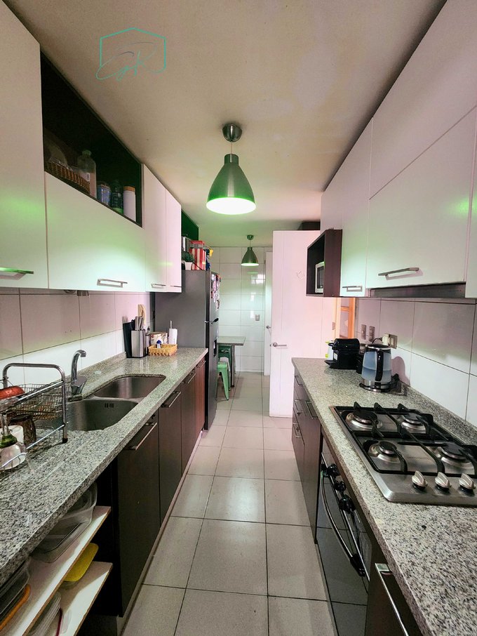3 Dormitorios (uno en suite amplio) y 2 baños. Living comedor con acceso a terraza y con vista a la piscina del edificio, del comedor accedes directo a cómoda cocina. La cocina cuenta con comedor de diario, muebles con cubierta de cuarzo, equipada con encimera a gas, horno eléctrico, campana y logia al exterior. Piso flotante en todo el departamento.