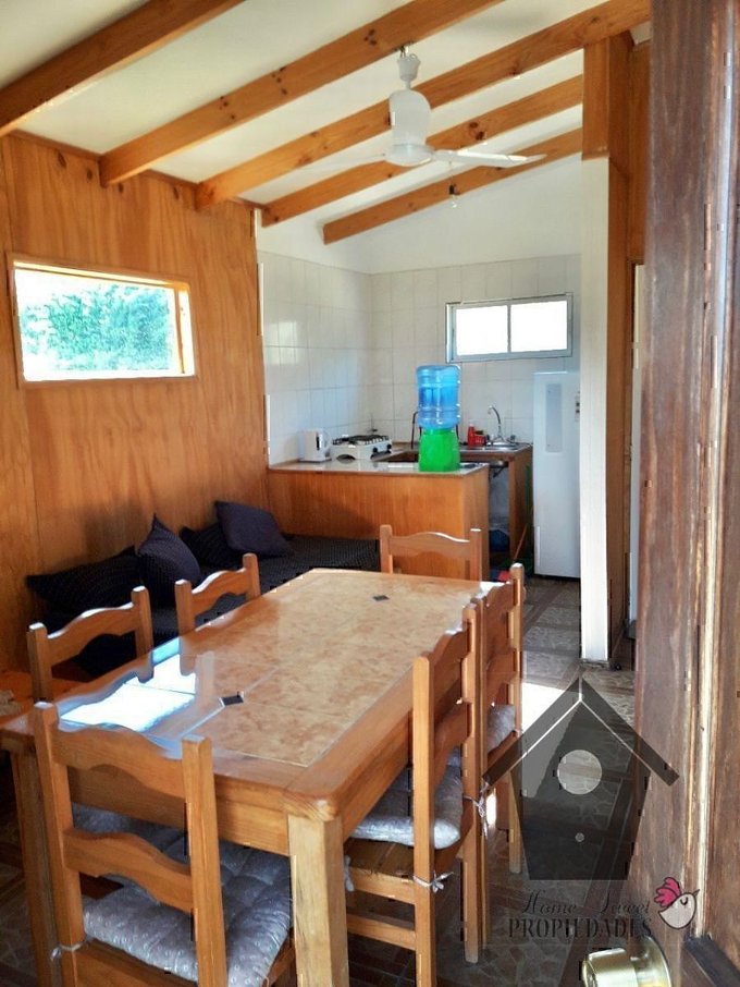 Cabañas de madera construidas el año 2014, amobladas y equipadas para 6 personas, tienen horno eléctrico, cocinilla, refrigerador, living comedor con mesa de comedor comedor, sofá cama y TV Satelital, cama matrimonial en dormitorio principal y camarotes en el segundo dormitorio. La parcela cuenta con empalme de Chilquinta, Respecto al agua la parcela tiene dos estanques de 5,400 Lts. los que actualmente se llenan con camiones aljibes, hay además factibilidad de pozo propio y existen derechos de agua sobre un pozo actualmente seco.