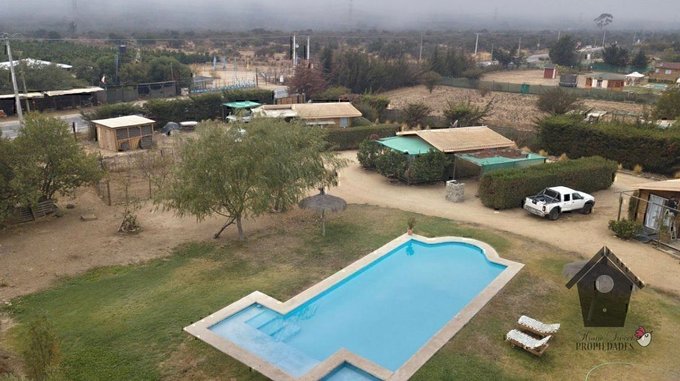 Parcela de 5.000 metros cuadrados, Ubicada en carretera F-10-G, Pelumpen Olmué. Con cuatro cabañas equipadas para arriendo a vacacionistas, cuenta con piscina, quincho, estacionamiento y juegos infantiles, se vende con lista de clientes. Las cabañas de 40m, tienen un estar con cocina americana dos dormitorios y un baño común completo y se encuentran amobladas y equipadas para alojar a seis personas. Todas las cabañas cuentan con quincho, terraza y estacionamiento, tres comparten una piscina de 17m x 6m y la cuarta tiene acceso para silla de ruedas y una piscina de 8m x 3m de uso exclusivo.