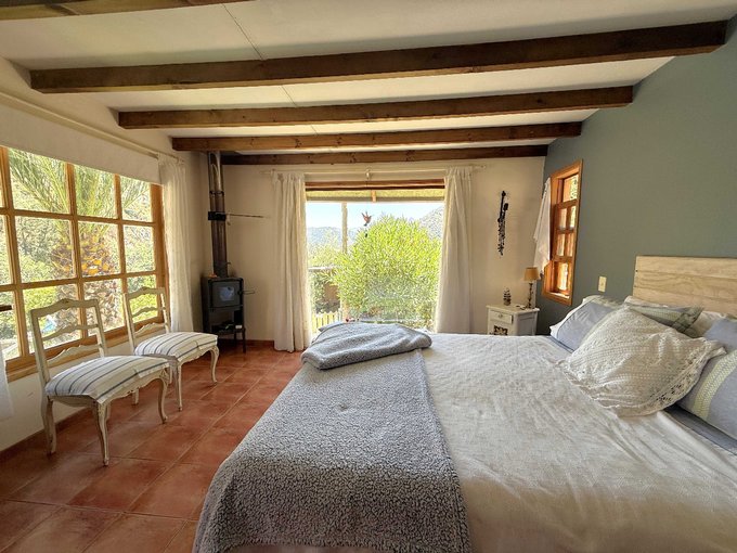 Amplio dormitorio principal, luminoso y con hermosa vista y conexión con la naturaleza, calefaccionado mediante Bosca a leña.