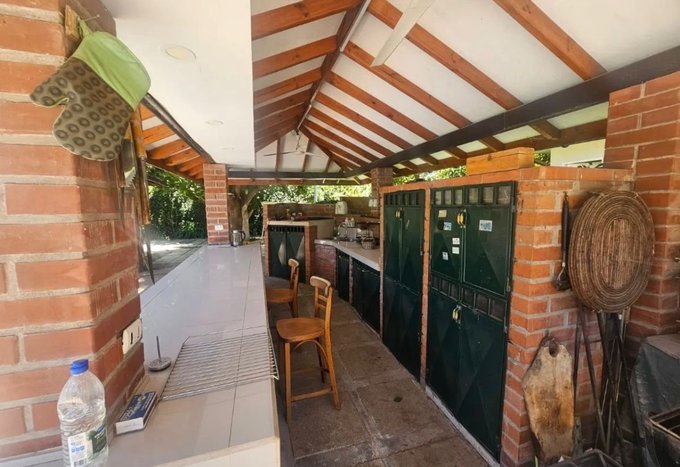 El exterior está pensado para disfrutar todo el año: quincho completamente equipado, piscina temperada con baños independientes, sala de juegos, fogón y patio interior. Los jardines cuentan con riego automático e iluminación nocturna con paneles solares.