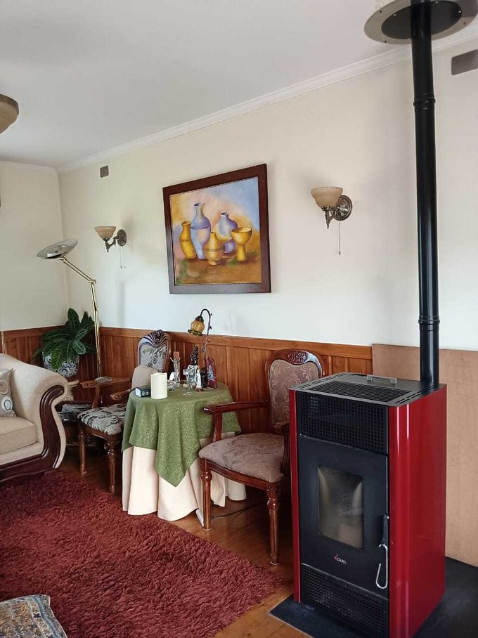 En el condominio Parque Horizonte, a sólo 35 minutos del centro de Temuco, camino a Huichahue, se encuentra esta acogedora y amplia casa de 140 m2 emplazada en un terreno de 5000 m2. La vivienda cuenta con 3 Dormitorios, el principal en suite, 2 Baños adicionales y dormitorio + baño de servicio, sala de estar y sala de estudio, una cocina amoblada con comedor de diario, amplio living-comedor, 2 Terrazas de 35 m y 29 m, lavadero, bodega, leñera y estacionamiento techado.