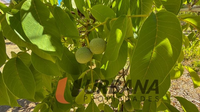 El terreno posee acciones de agua, estanques de acumulación, empalme eléctrico propio con medidor, y una consolidada plantación de árboles frutales, entre los que destacan aproximadamente 70 nogales, además de damasco, naranjo, uva e higuera, lo que permite un uso productivo del terreno.