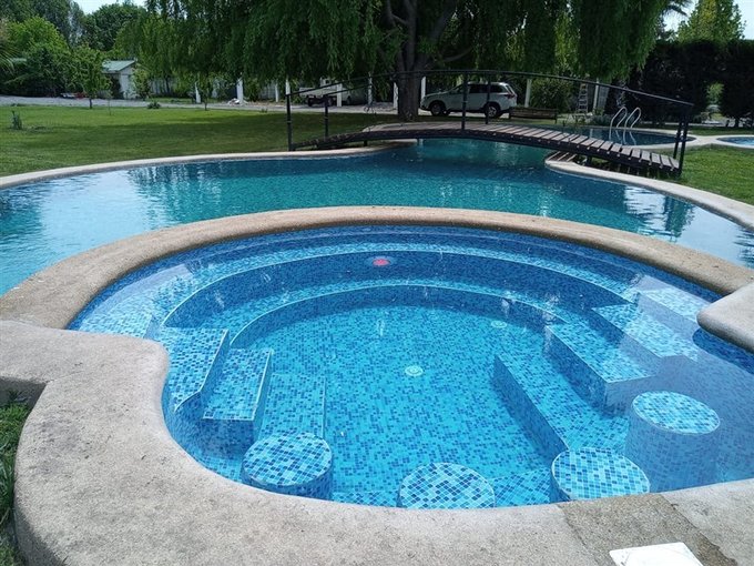 Piscina de Lujo (20m x 8m): Diseño en forma de 8 con jacuzzi temperado, paneles solares y revestimiento completo en mosaicos. Perfecta para relajarse!