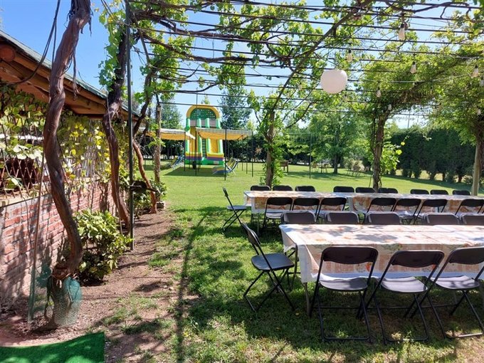 Parrón Amplio (7m x 15m): Con piso de cemento, perfecto para disfrutar al aire libre.