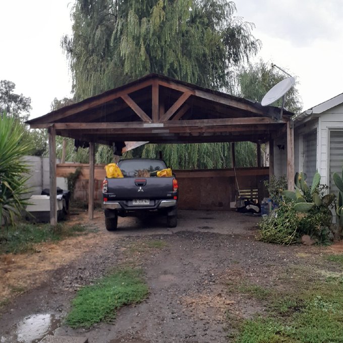 Estacionamiento techado para dos vehículos, adosado a la casa.