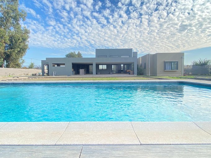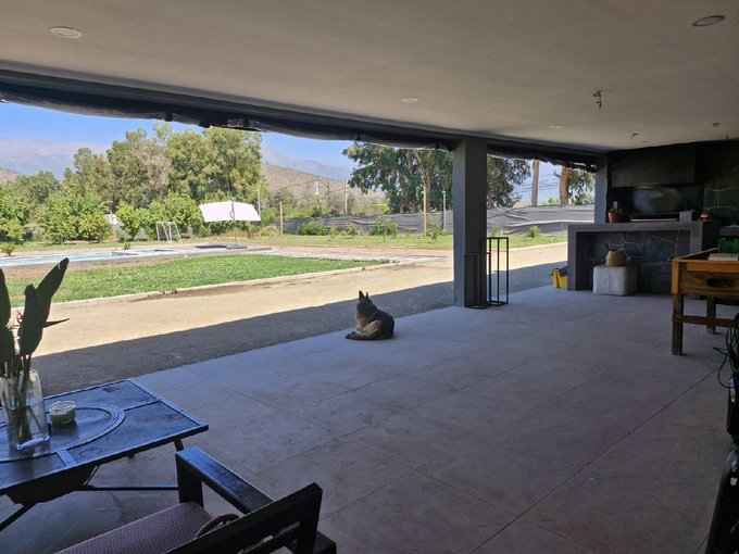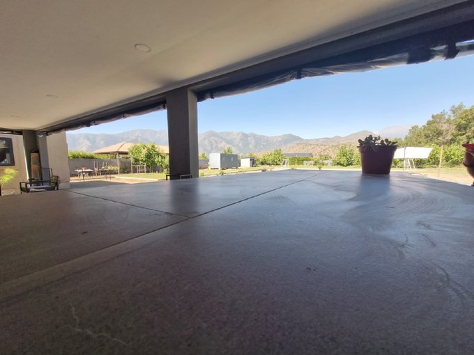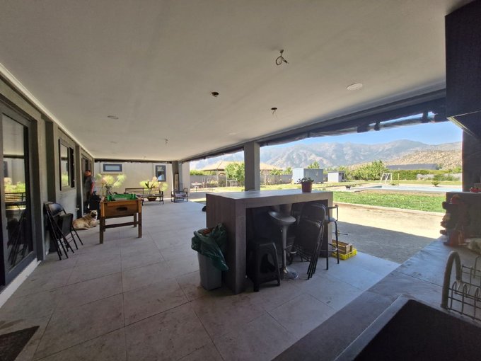 Si estás buscando Una Parcela en condominio Seguro, cerca de Santiago donde te abrace la paz y la quietud en la comuna de Paine, pero cerca de todo lo que necesitas, comercios , colegios, metro tren, supermercados, y además buscas una bellísima vista a la cordillera desde cualquier ambiente de esta casa amplia y confortable te ofrezco este maravilloso hogar en una parcela que cuenta con todo lo que seguramente soñaste; La casa se compone de una área privada donde encontrarás 3 dormitorios una sala de estar un baño y el dormitorio principal en suite, por otro lado un gran living comedor con techos altos y grandes ventanales , posee excelente ventilación, es muy luminosa , fresca perfecta para una familia con niños , cruzando el living comedor nos encontramos con una gran cocina que posee prácticos muebles empotrados con mesa Isla y comedor diario, a un costado posee una amplia despensa para guardar alimentos. La cocina tiene salida a una terraza que funciona como un gran quincho a la vez, el mismo esta conectado a una espaciosa logia , posee estacionamiento techado como para 4 autos pero tranquilamente entran 15 autos en la zona no techada. El patio Trasero, con vista a la cordillera podrás observar una exquisita piscina y un área verde muy bonita. la parcela posee Arboles frutales cercado perimetral Portón de entrada eléctrico con un bello jardín.