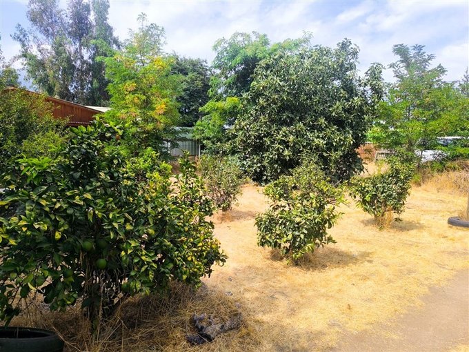 El terreno es completamente plano, lo que facilita futuros proyectos, ampliaciones o uso agrícola. Además, incluye parra y diversos árboles frutales, aportando valor y un entorno natural consolidado.
