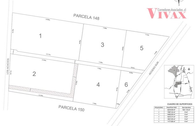 Aledaña a esta parcela, camino de por medio, se vende también parcela de superficie 8.900 m2 también son 2 roles, valor venta $140 millones, el paño completo de 15.314 m2 (4 roles) se vende en $260 millones.
