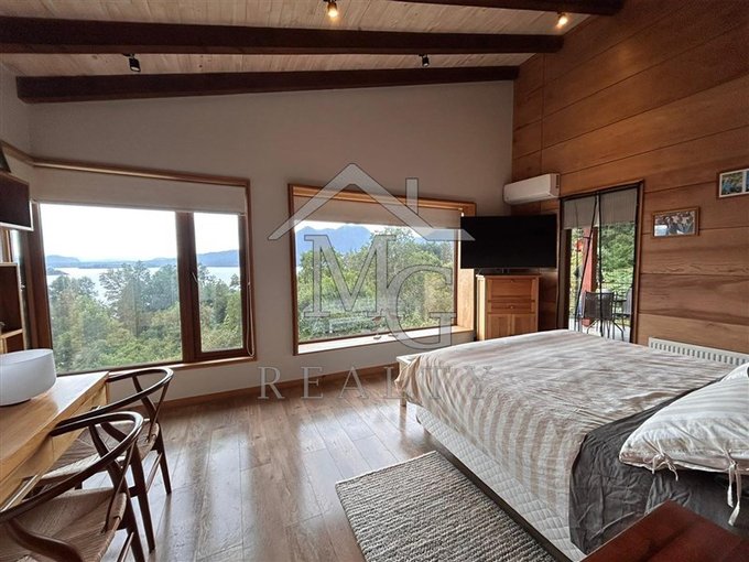 Vende MGrealty espectacular casa en lago Panguipulli en condominio con cuidador permanente con playa propia de arena con embarcadero, y quincho cerrado o departamento con muelle propio. Ubicado en la rivera sur del lago.
