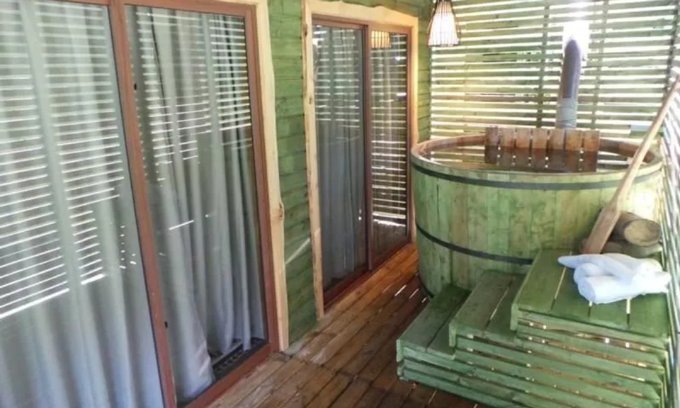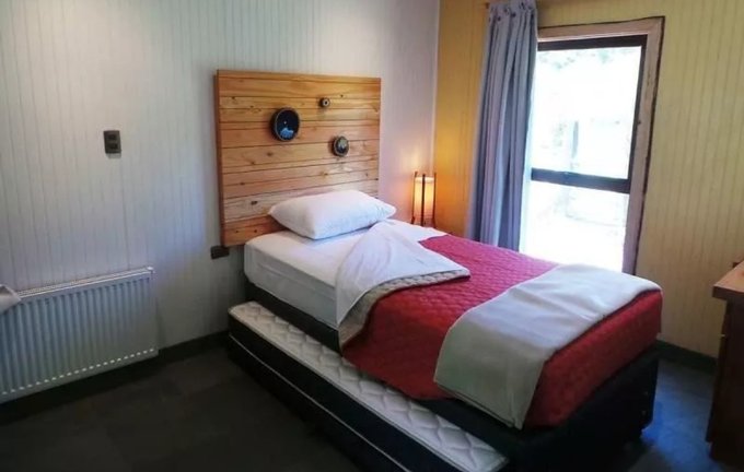 Cuenta con 12 habitaciones construidas en madera nativa de 30 a 50 mt2 totalmente equipadas. Habitación doble matrimonial, doble individual, grupal, familiar y familiar plus. Todas en un ambiente cálido y elegante.