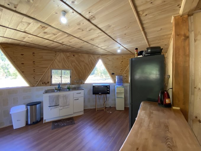 Cuenta con una casa principal y 2 domos de 120 m2 cada uno, terreno completamente cercado , portón automático, agua , electricidad , bosque, aún cuenta con espacio para crecer en capacidad y construcciones