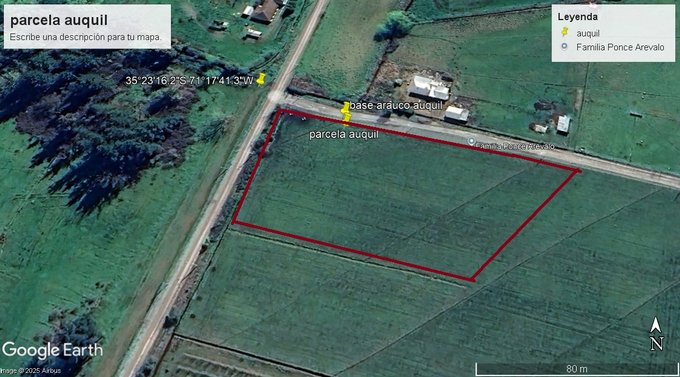 SE VENDE PARCELA – 5.000 m²Hermoso terreno, ideal para vivir o invertir. Ubicación: Auquil Precio: $30.000.000Terreno plano y despejado, con excelente acceso y entorno natural.Ideal para construir casa, invertir o disfrutar del campo.Canal de regadío y acciones de aguaFactibilidad luz eléctrica y agua de pozo2 vías de ingreso a parcela: camino público y acceso cerrado por camino vecinalContacto: Sergio Cárdenas +56942119727
