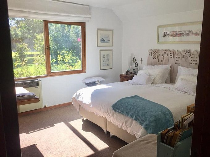Casa 250 m2 en terreno de 5.000 m2, 4 habitaciones, 3 baños (considera baño de visita), dormitorio principal en suite, dormitorio de servicio incluye baño, dormitorios con alfombra y baños con piso cerámico, sala de estar.