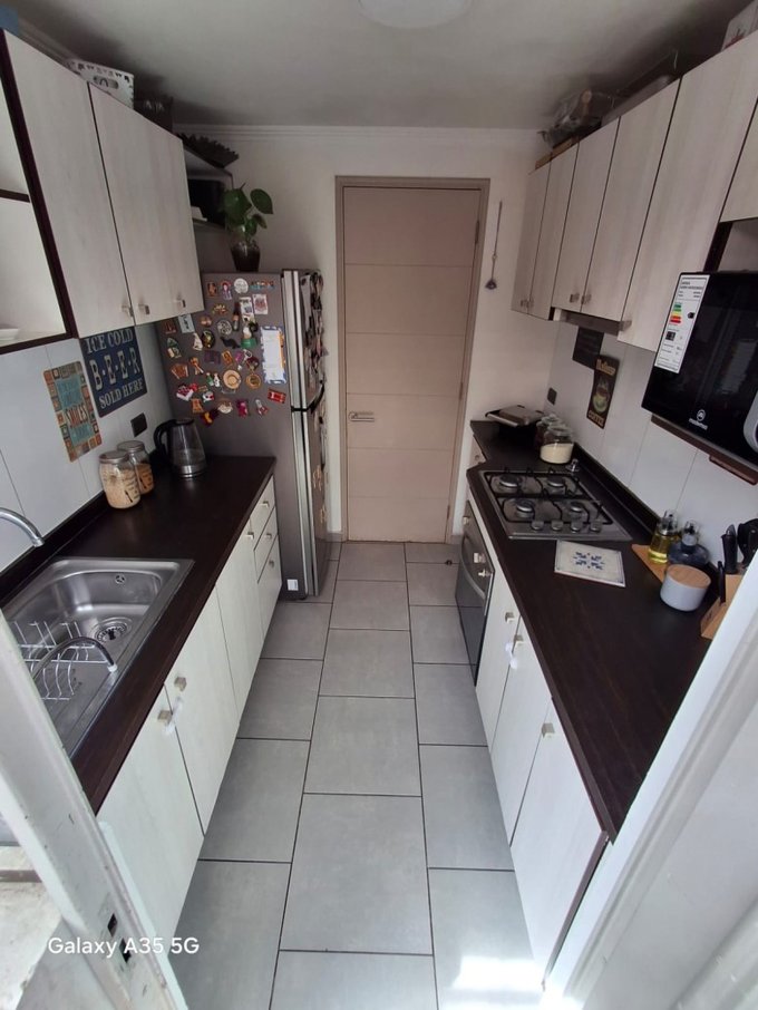 - Cocina amoblada y equipada con encimera, horno y campana