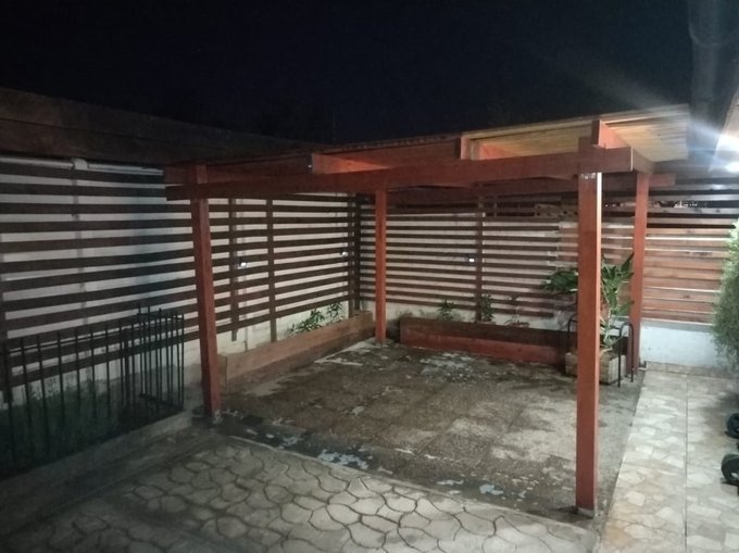 - Patio trasero con terraza techada, jardineras y trillage de madera a modo de cortavista
