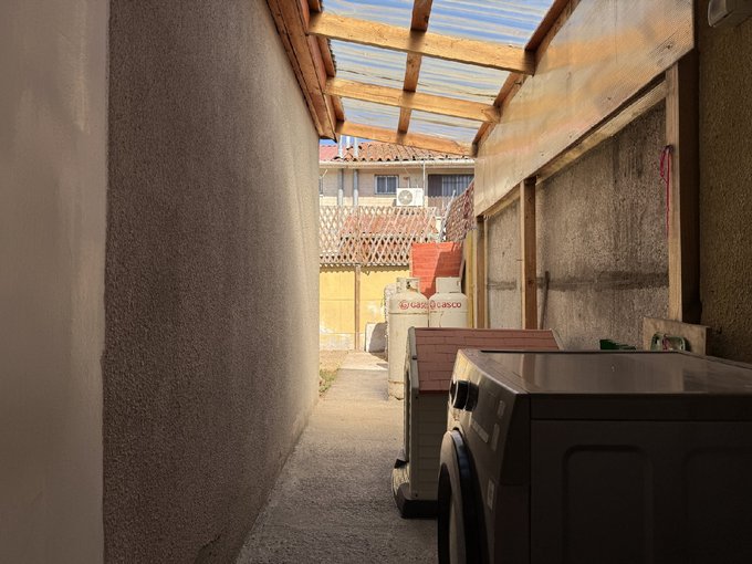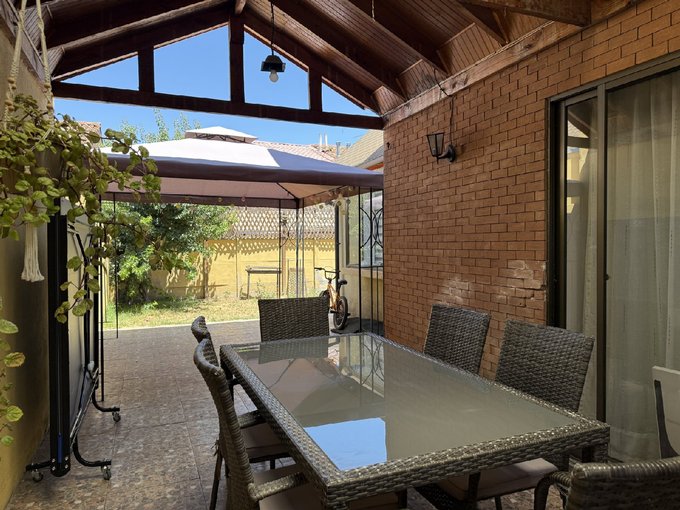 Terraza techada, piso de cerámica. Patio trasero con parrilla empotrada, espacio disponible para habilitar piscina.
