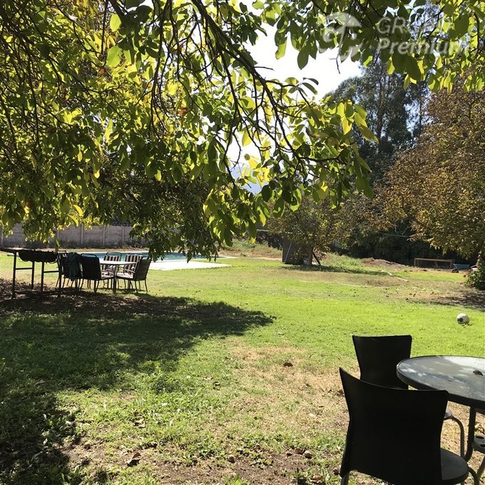 No dejes pasar esta increíble oportunidad! Esta espectacular parcela en Parcelación Los Nogales de Don Toribio, en la comuna de Peñaflor, te ofrece un espacio perfecto para ti y tu familia. Con 5000 m2 de terreno, esta propiedad cuenta con 5 dormitorios y 3 baños, a con una excelente piscina y camarines, una cabaña completa de 80 m2, árboles frutales maduros ideales para disfrutar de la naturaleza con vista a la montaña comodidad y privacidad que buscas. a solo 12 minutos del centro cívico de Peñaflor, cercana a colegios, supermercados, servicios médicos, bancos y comercio.