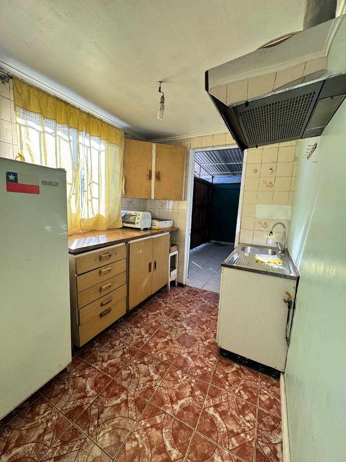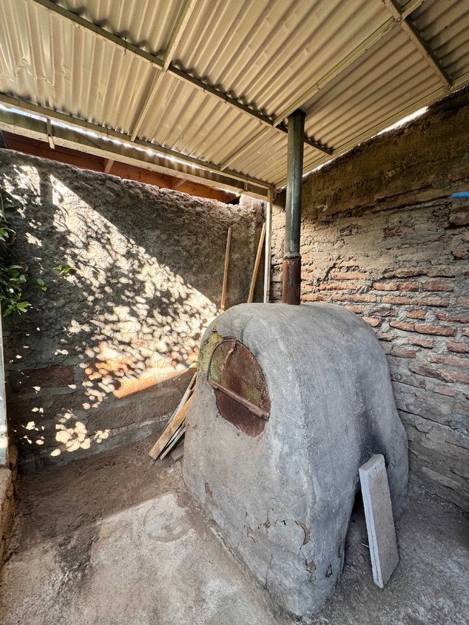 Cocina independiente con excelente luminosidad gracias a su vista al antejardin, con salida directa a gran cobertizo, conectado a un patio semi techado con árboles frutales, horno de barro, loggia independiente cerrada.