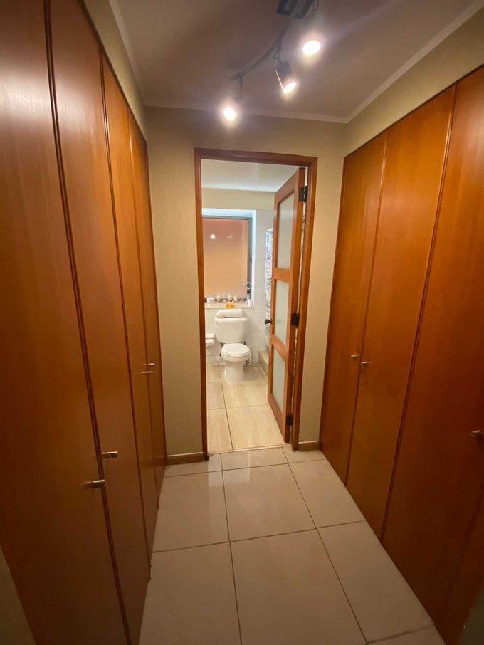 Hall de distribución con baño de visitas, living comedor separado con salida que conecta a espaciosa terraza techada con quincho-bar, sala multiuso y sauna. Cocina con comedor de diario, equipada con despensa, horno y encimera eléctricos, extractor de aire, lavaplatos doble y gran capacidad de almacenamiento. Esta se conecta con dormitorio de servicio y baño y con logia techada, cerrada y bodegas.