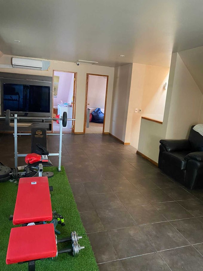 La casa cuenta con calefacción central con radiadores y losa radiante, riego automático, alarma, aires acondicionados, rejas con protecciones, portón automático, cámaras de seguridad.