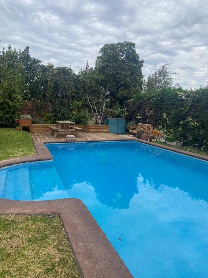 Posee terraza a lo largo de la casa, gran piscina, patio con un lindo jardín, riego automático; calefacción central, alarma.