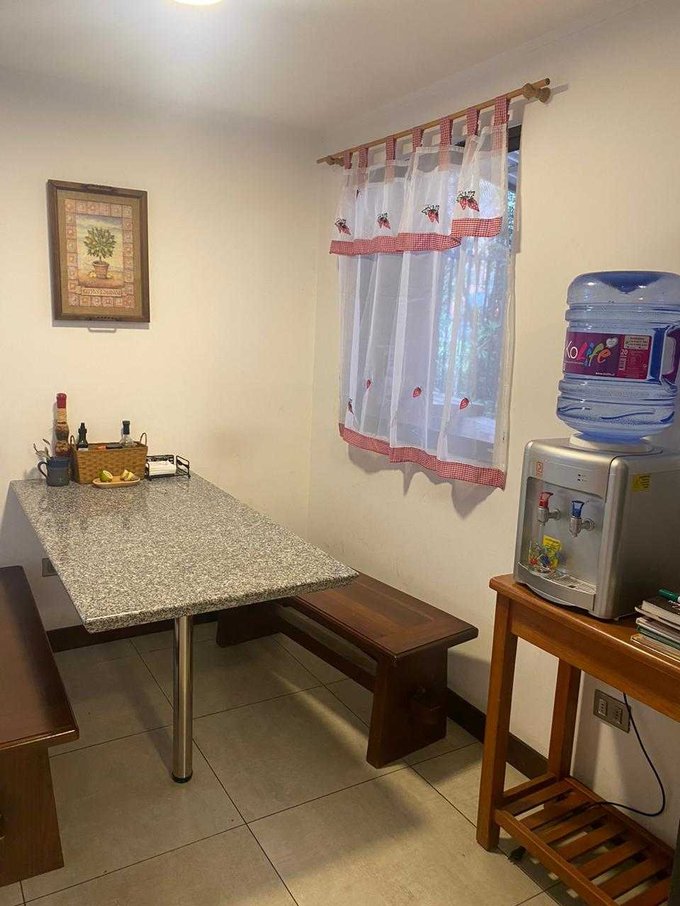 Cocina tradicional full equipada y amoblada, con comedor de diario.