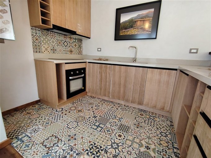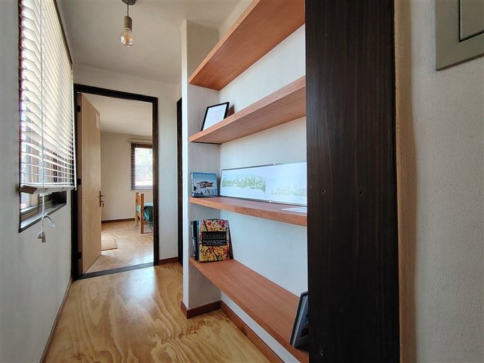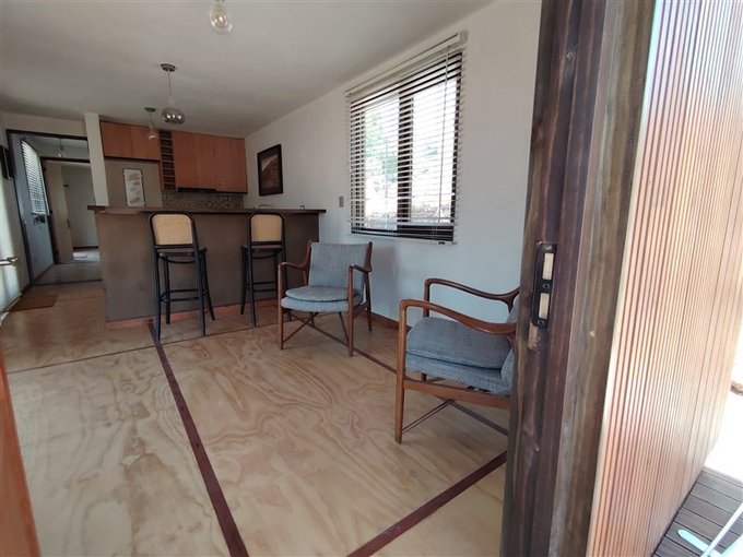Esta casa consta de una recepción que da a una sala de estar, cocina americana con piso tipo córdoba, acceso a dormitorio principal a través de un pequeño pasillo y un baño. Piso totalmente de madera, ventanas tipo termopaneles.