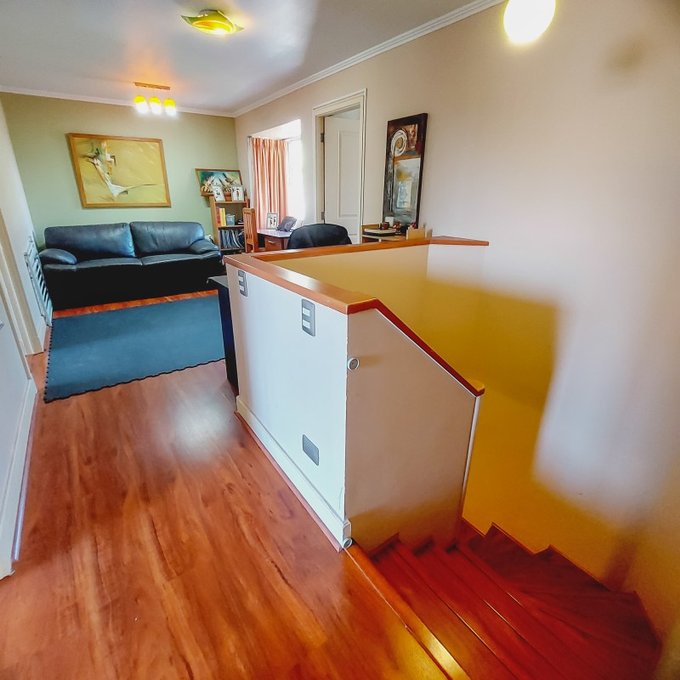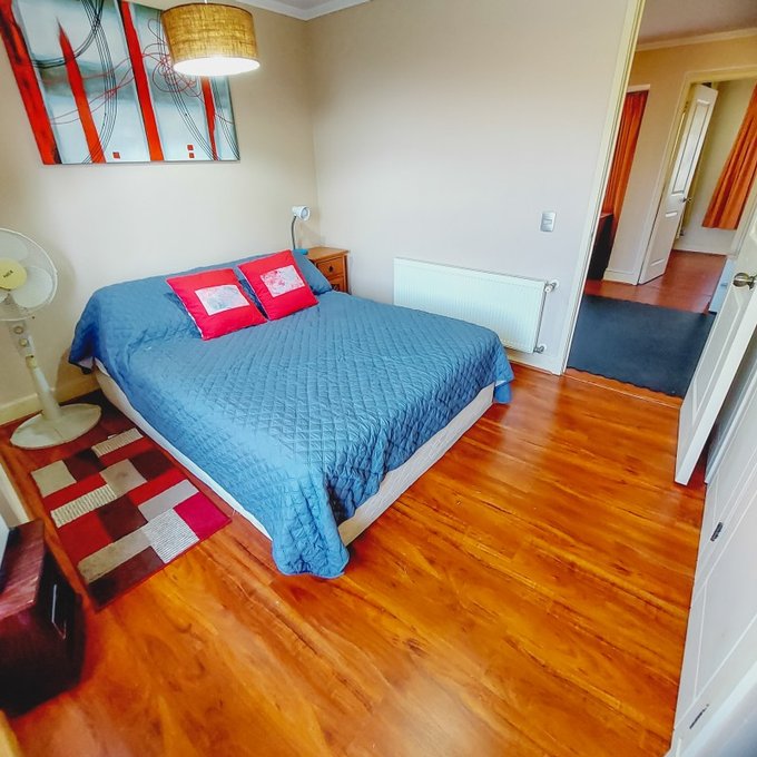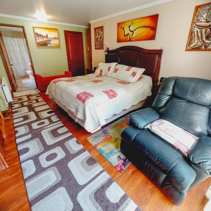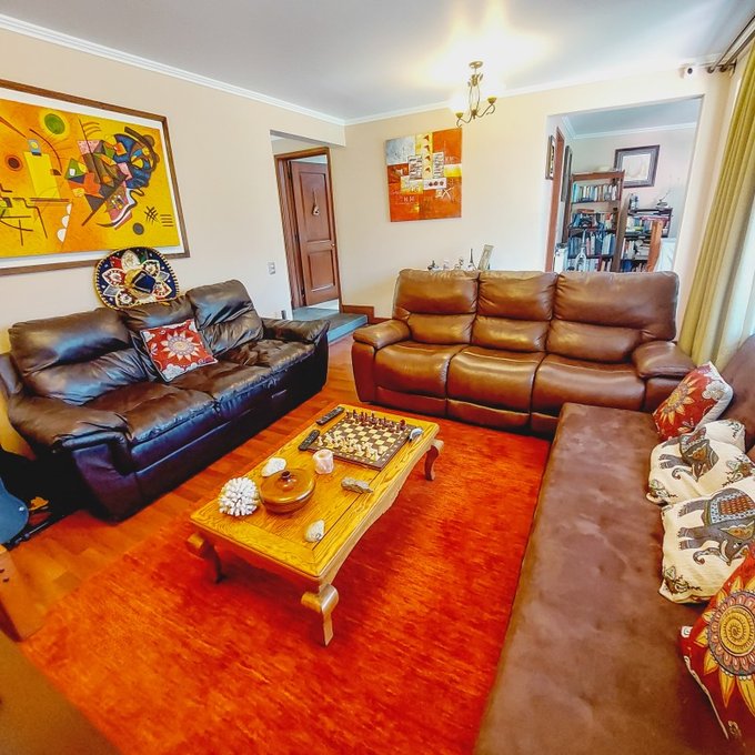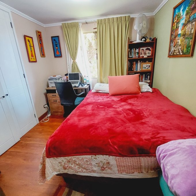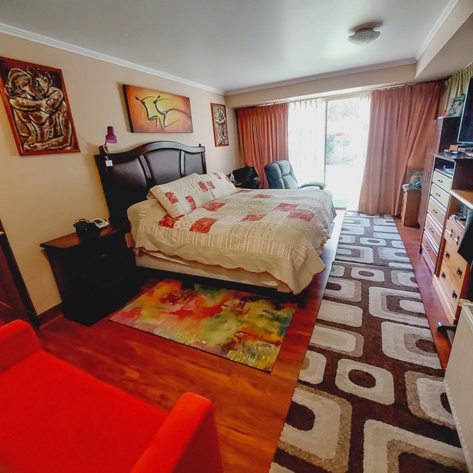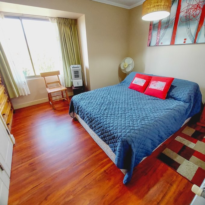 Sala de estar, baño completo, tres habitaciones con closets todas con vistas a la cordillera.