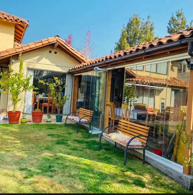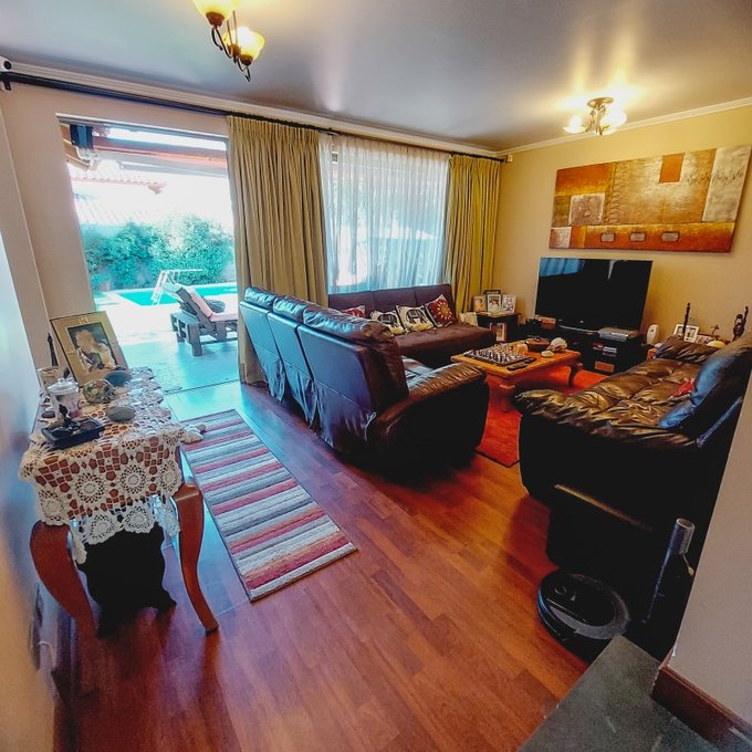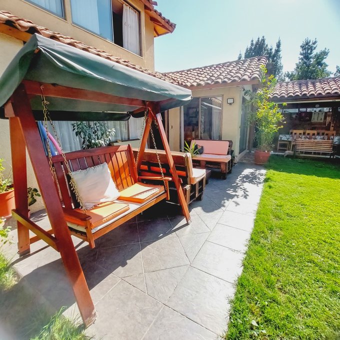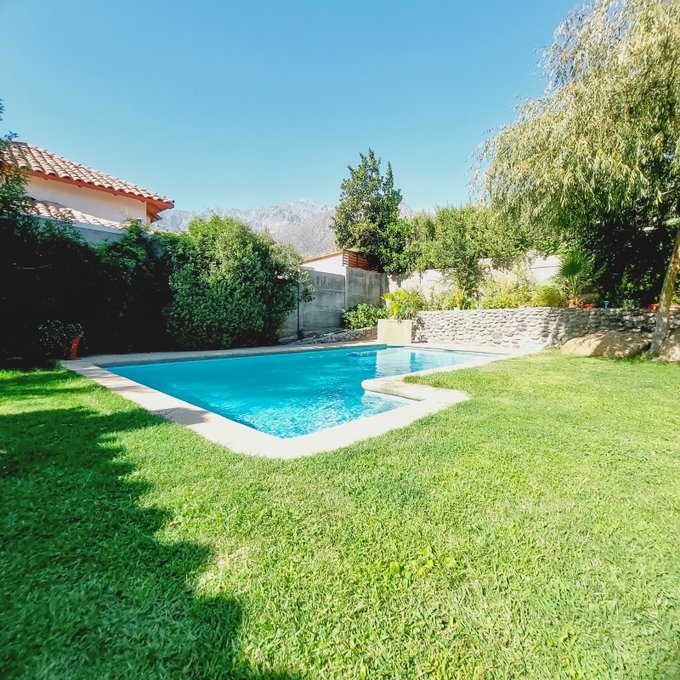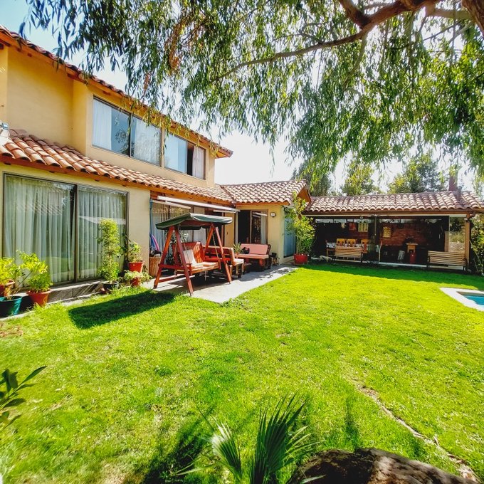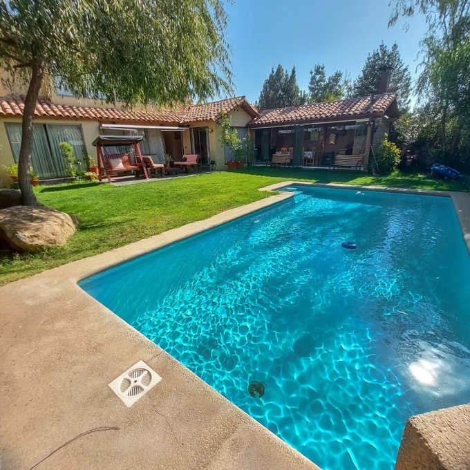 Piscina Temperada con bomba de calor, terraza techada con toldo retráctil, amplio quincho cerrado, Jardines con rosales y plantas.