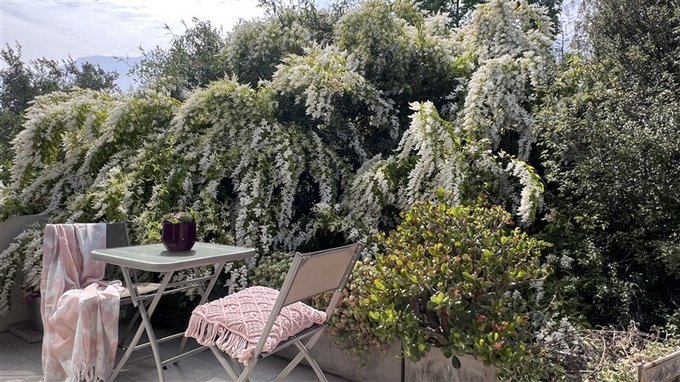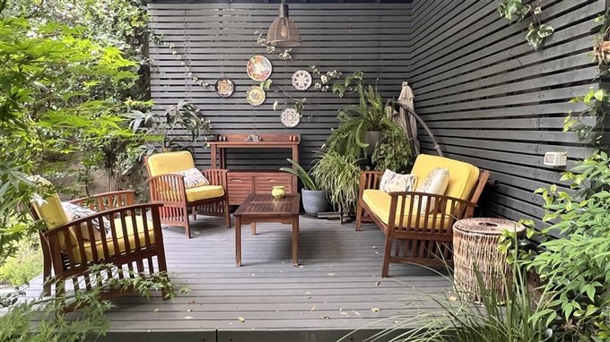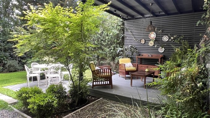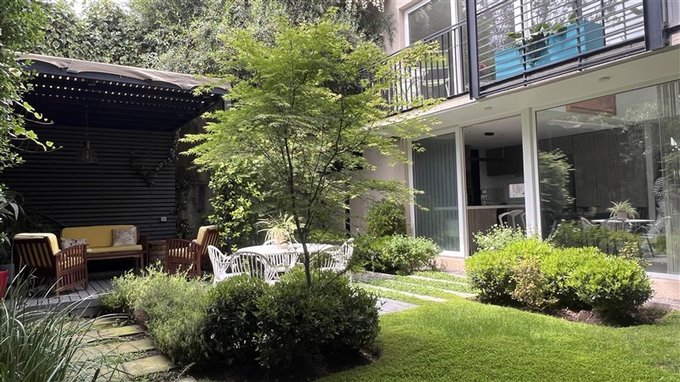 Patio con terraza y jardín consolidado