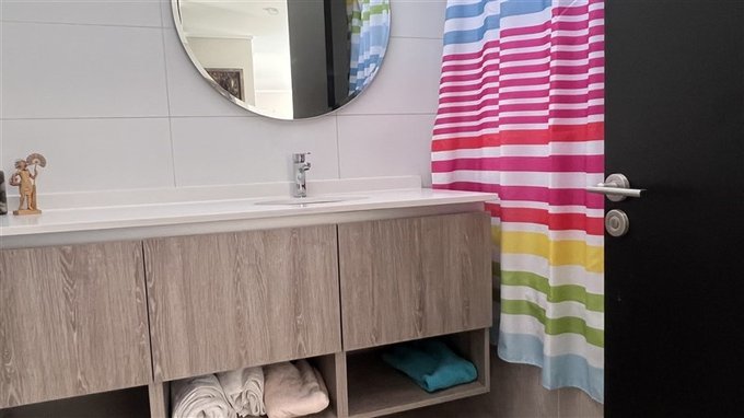 Baño en suite con doble lavamanos, luz y ventilación natural
