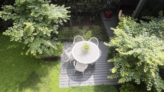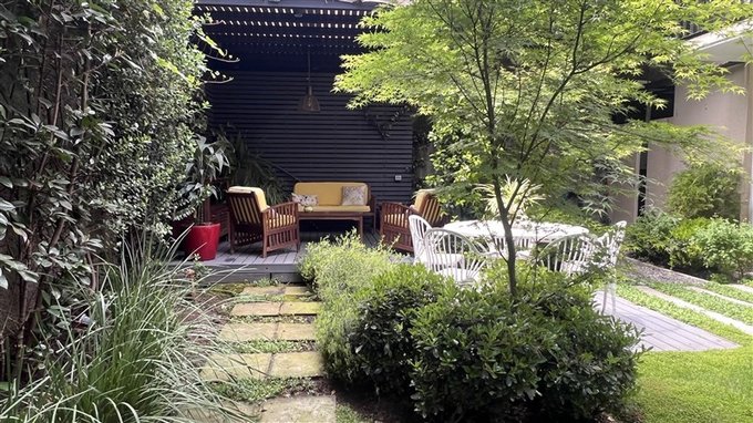Patio con terraza y jardín consolidado