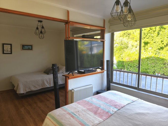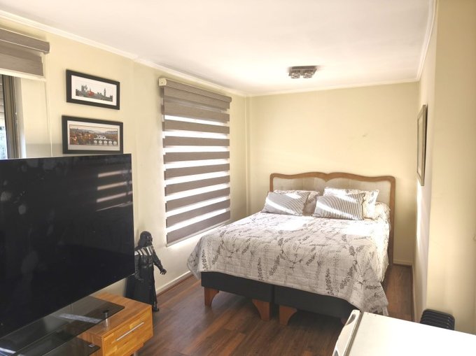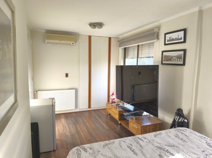 - Dos dormitorios ampliados con closet y aire acondicionado, uno de ellos puede dividirse para dejar dos dormitorios de buen tamaño para cama de dos plazas.