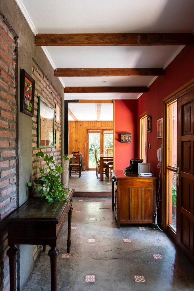 Casa de un piso construida con materiales mixtos, generando una preciosa obra de arquitectura, lo cual otorga una identidad única a esta propiedad, excelente iluminación natural y amplios espacios interiores, cuenta con hall de acceso, amplio living comedor con salida a terraza, cocina americana amoblada que se integra al espacio, patio de servicio, 2 baños y 3 acogedores dormitorios, el principal de gran tamaño con baño en suite, walk in closet y conexión al jardin, ideal para el confort de tu familia.