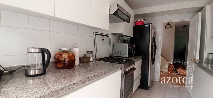 Toda la casa cuenta con piso flotante, porcelanato en cocina, alarma, riego automático, conserjería 24/7, calefonts nuevos.