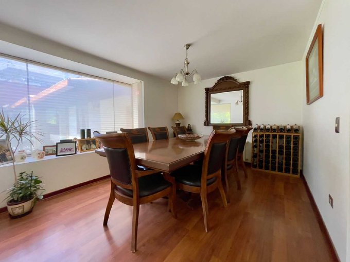 - Comedor con generosos ventanales que permiten la vista al jardín y la calidez de la luz natural
