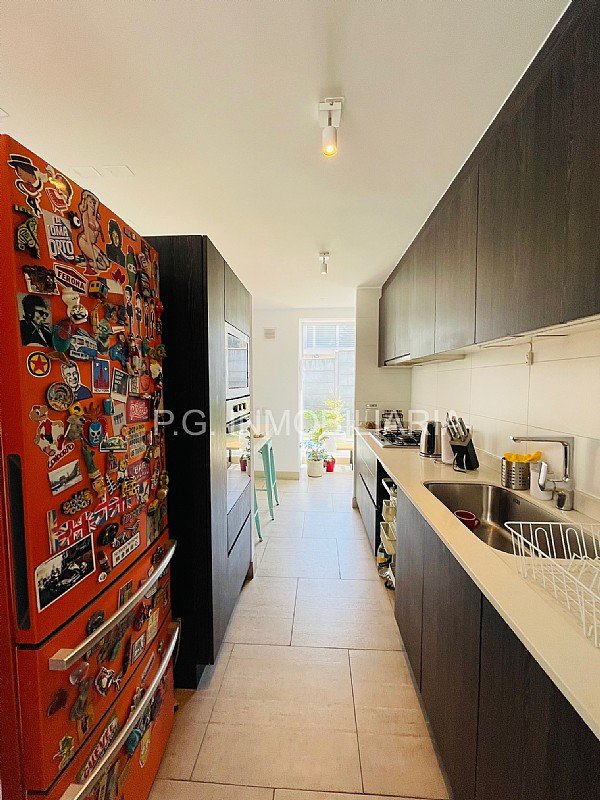 Piso -1: Entrada principal, tiene una loggia, pieza servicio con baño. 2 estacionamientos. Caldera, calefont y regulador de riego automático.