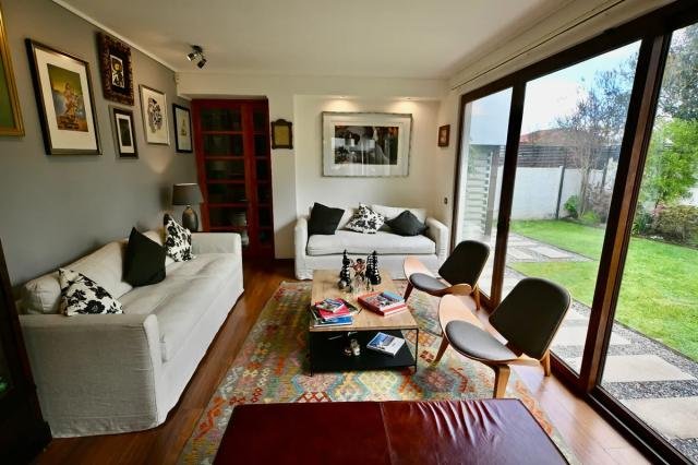 Código interno Procasa: 68598 EN CONDOMINIO! Acogedora y moderna casa de 264 mt2 útiles y 390 mt2 de terreno, distribuidas en 5 dormitorios, siendo el principal en suite y con walk in closet, y 3 baños, buen living-comedor, sala de estar, home office y una cómoda cocina con dormitorio de servicio más loggia. Además, cuenta con un excelente jardín formado que incluye terraza, piscina, quincho y espacio para 2 estacionamiento. Ventanales con termopanel, calefacción central, alarma y cámaras de seguridad, dentro de otras características.