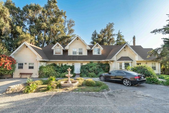 Bodega, espacioso quincho, piscina, terraza techada y balcones, hermoso jardín con árboles frutales.