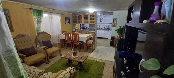 La casa tiene 2 estacionamientos techados, living comedor juntos con cocina americana, 2 dormitorios y 1 baño.