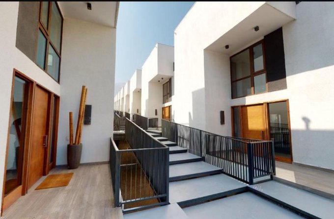Casa nueva en condominio, Town House de 3 pisos más zócalo. Se compone de 3 dormitorios principal en suite, 3 baños, cocina equipada con encimera, horno, campana, microondas, lava vajillas y mesón tipo isla, más y terraza y 2 estacionamientos. Superficie construida de 184 m2 más patio de uso y goce exclusivo de 92 m2.