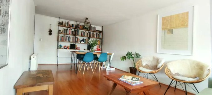 Ubicado en un barrio residencial consolidado de Peñalolén, este departamento se encuentra en un condominio de construcciones de baja altura, con amplias áreas verdes centrales y acceso directo a un hermoso parque colindante. Todo el departamento está orientado al norte, lo que asegura luminosidad durante todo el día.