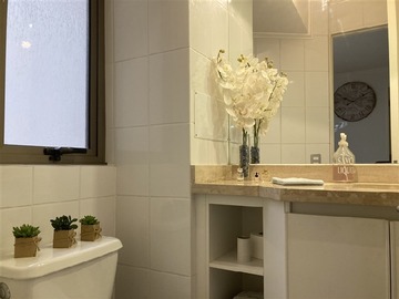 Dormitorio principal en suite y con terraza a la Cordillera, más dos Dormitorios con terraza y dos baños completos en frente a pasillo, más un cuarto dormitorio más pequeño con Baño completo (para uso habitación o Estudio-Home Office), y un 5 Baño de Visita en sector de Hall de entrada. La Cocina es amplia full equipada, con salida a una logia iluminada, con lavadero y espacios para secado y planchado. El arriendo considera Una bodega y un estacionamiento grande en subterráneo.